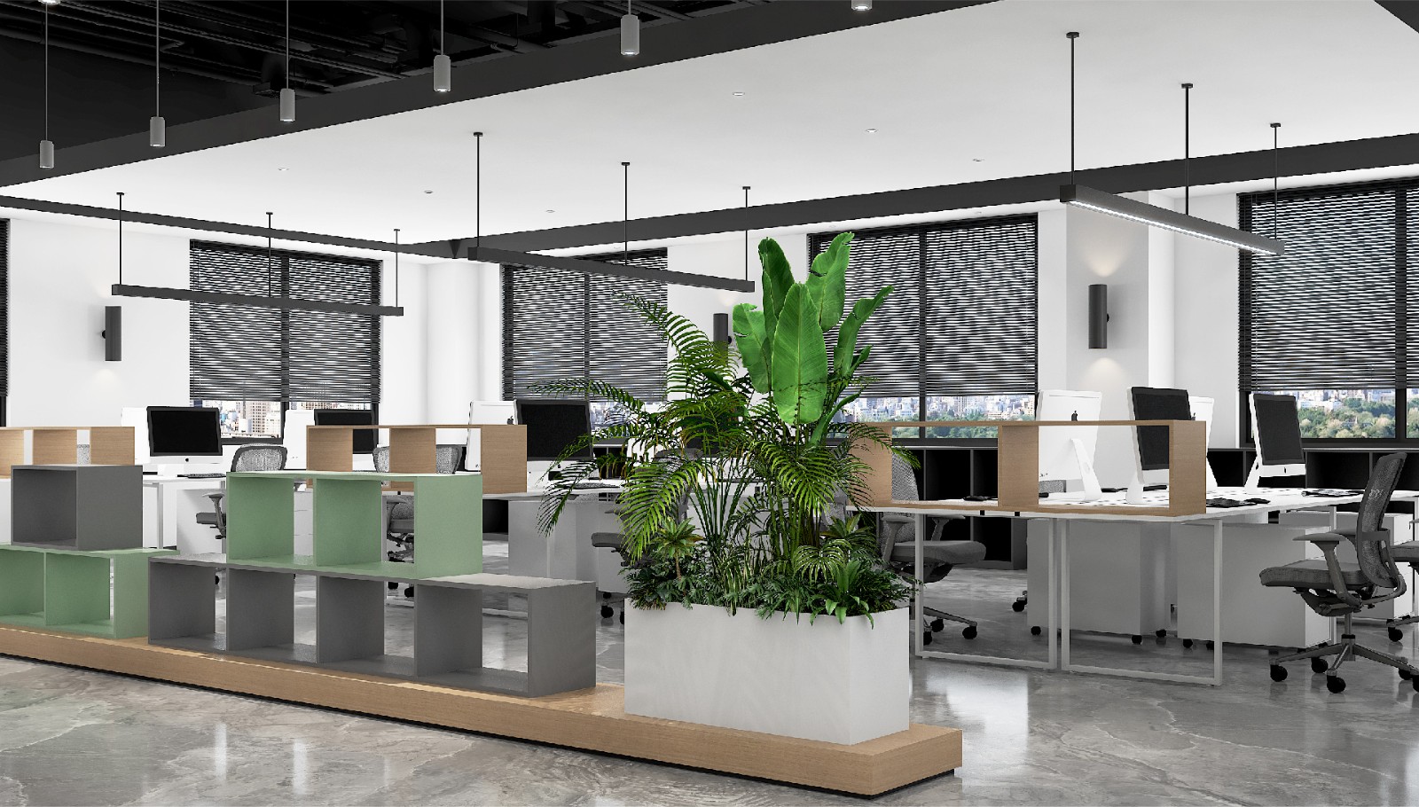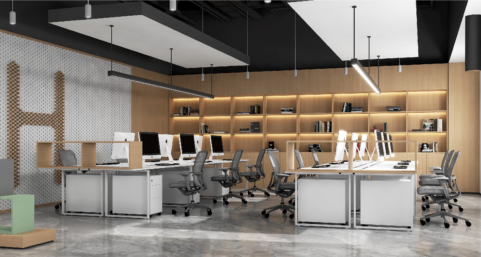 在這(zhè)一項目中我們希望打破常态化辦公空間的格局,創造了一種(zhǒng)未來式的整體性開(kāi)放格局,讓多個維度的空間可以在此交互,讓人可以充分參與到對(duì)空間的感知中。我們設想了一種(zhǒng)以“感知"和"探索”爲核心的空間系統,從尺度感知、行爲感知、色彩感知、序列感知和多維感知爲核心的一個具有多元探索的全新辦公模式。